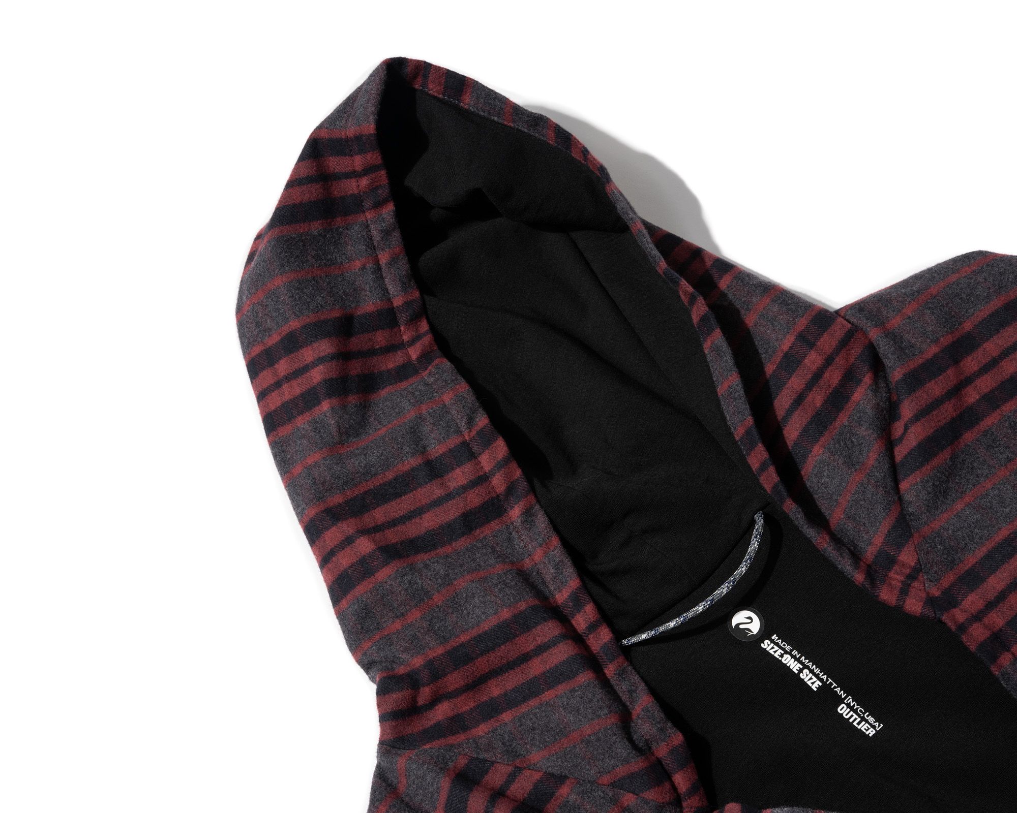 Alpha is a non-migrating insulation originally designed for US special forces and optimized for breathability and wet conditions performance. It can be paired with a much more breathable face and lining fabrics than almost any other common insulation, which in turn allows us to create much more comfortable cool weather clothing. The nylon-core merino interior keeps things soft and dry with all of the natural performance of merino. On the outside is Acottonflannel, a 100% cotton 190gsm plaid flannel woven and spun in Italy by the masters at Albini, because no one quite does shirting like they do. Like most [alpha]core set-ups this combination traps a nice amount of warmth but begins to dump heat before things get too hot.