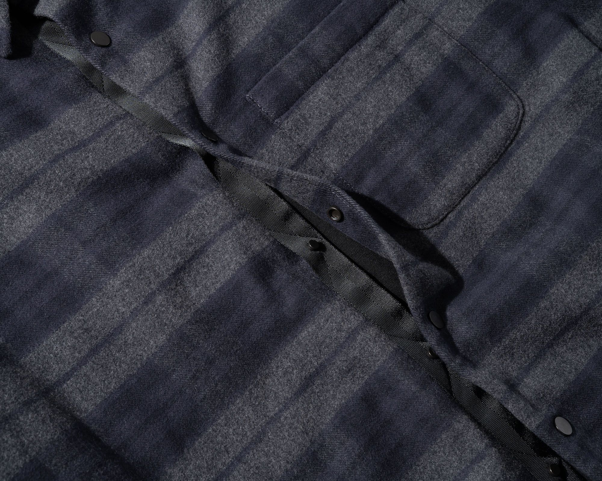 Alpha is a non-migrating insulation originally designed for US special forces and optimized for breathability and wet conditions performance. It can be paired with a much more breathable face and lining fabrics than almost any other common insulation, which in turn allows us to create much more comfortable cool weather clothing. The nylon-core merino interior keeps things soft and dry with all of the natural performance of merino. On the outside is Acottonflannel, a 100% cotton 190gsm plaid flannel woven and spun in Italy by the masters at Albini, because no one quite does shirting like they do. Like most [alpha]core set-ups this combination traps a nice amount of warmth but begins to dump heat before things get too hot.