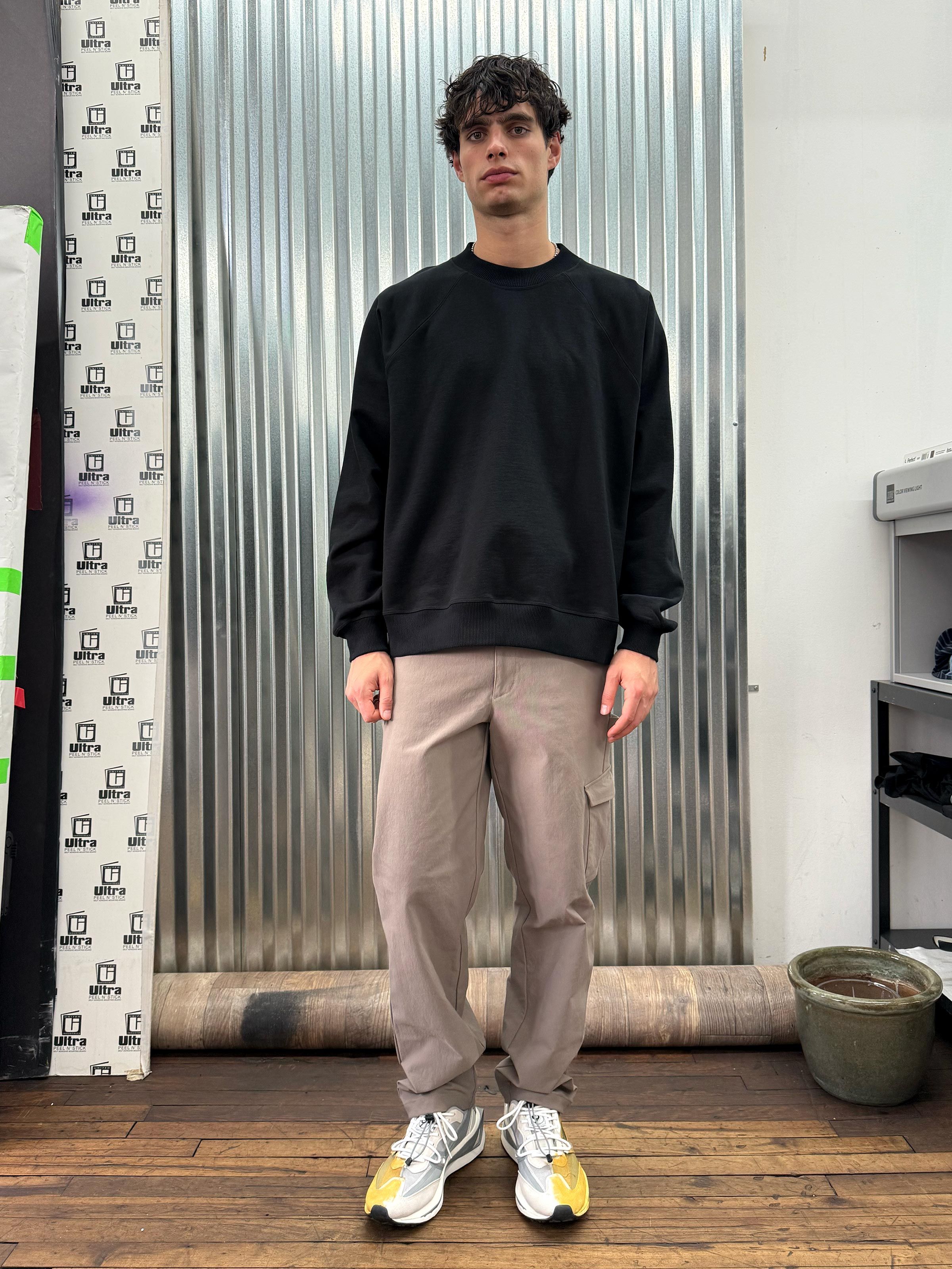 A heavyweight(ish), 460gsm, emotional armor of a sweatshirt fabric with all the performance of merino inside. The high-density cotton knit on the outside gives this fabric real structure, toughness and weight. The structure means hoods hold their shape while the garment almost floats off the body, supported by itself as much as the person inside. The density gives it a nice wind resistance (but not proofness), making for hoodies that feel halfway to proper jackets. And the weight, well, to be honest this was super-heavyweight back in the day when we first made it, but these days it’s just modestly heavy compared to some of the beastly all cotton hoodies the streetwear dudes have been cooking up. Meanwhile on the inside the loose terry loops of merino mean it’s secretly soft against the skin and has all the capabilities you’d expect from nature’s finest performance fiber. The merino sucks moisture from around the wearer creating a dry body climate. It naturally thermoregulates as well, staying comfortable in a wider temperature range than most other materials, while staying naturally odor resistant for longer wear times.