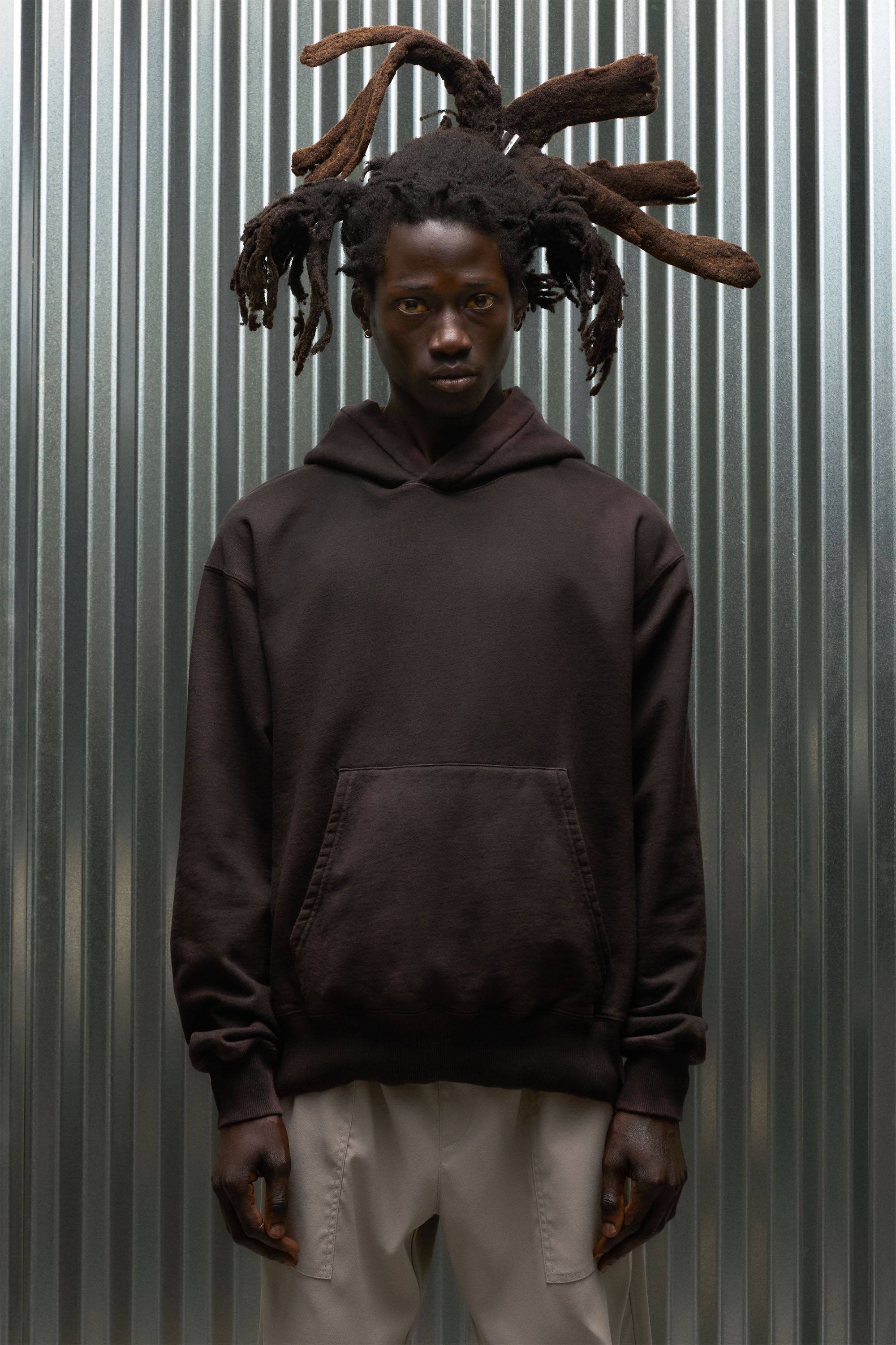 A heavyweight(ish), 460gsm, emotional armor of a sweatshirt fabric with all the performance of merino inside. The high-density cotton knit on the outside gives this fabric real structure, toughness and weight. The structure means hoods hold their shape while the garment almost floats off the body, supported by itself as much as the person inside. The density gives it a nice wind resistance (but not proofness), making for hoodies that feel halfway to proper jackets. And the weight, well, to be honest this was super-heavyweight back in the day when we first made it, but these days it’s just modestly heavy compared to some of the beastly all cotton hoodies the streetwear dudes have been cooking up. Meanwhile on the inside the loose terry loops of merino mean it’s secretly soft against the skin and has all the capabilities you’d expect from nature’s finest performance fiber. The merino sucks moisture from around the wearer creating a dry body climate. It naturally thermoregulates as well, staying comfortable in a wider temperature range than most other materials, while staying naturally odor resistant for longer wear times.