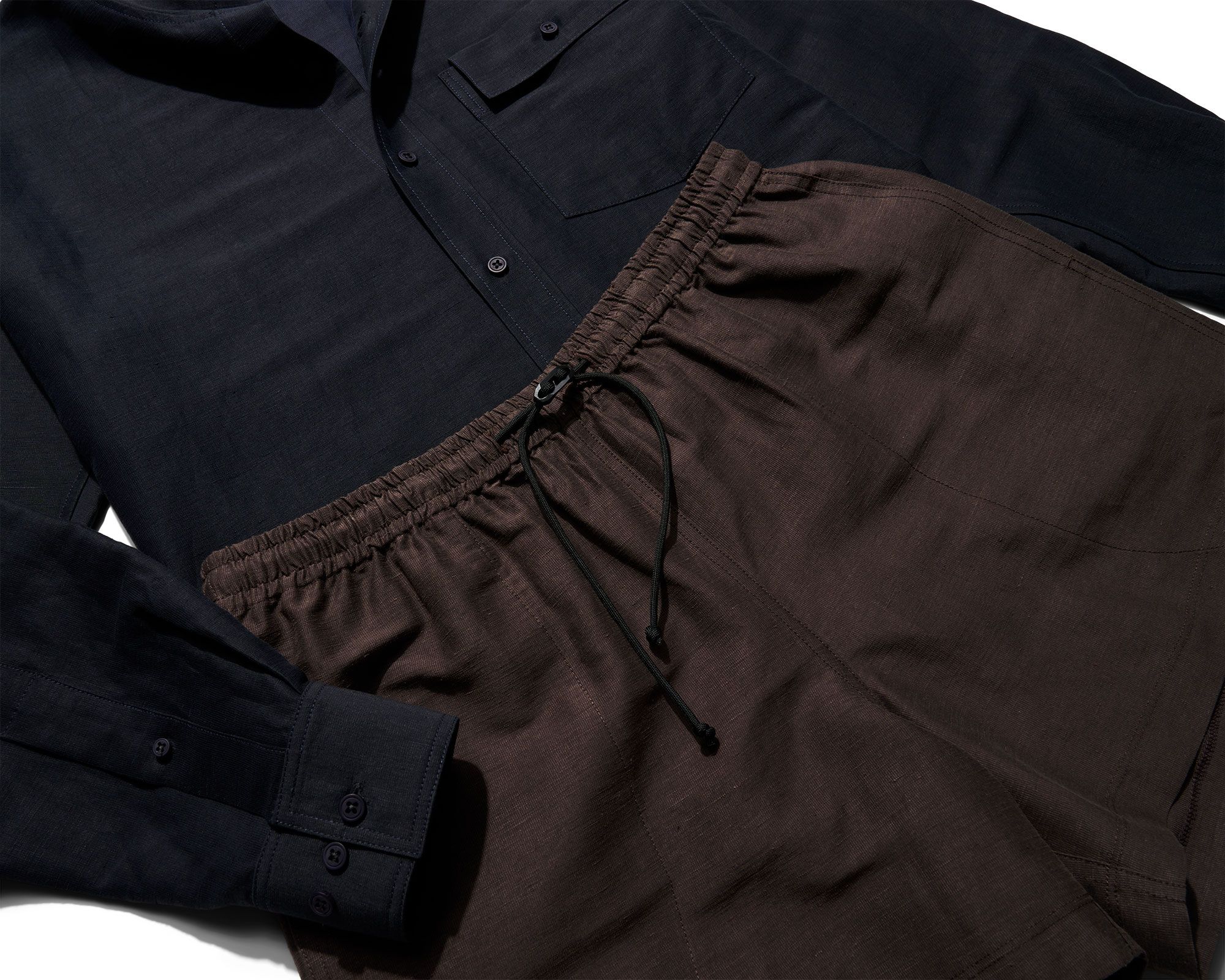 The ancient meets the industrial to create a radically open yet opaque material. The fundamental differences between knitting and weaving collapse in this Japanese fabric that combines the rugged simplicity of a polyester mesh with the deep character and performance of linen. Open to the air so the skin can breathe, opaque to the eye so the mind can relax and injected with linen's dry touch and beautiful break in to create a remarkable summer fabric.
