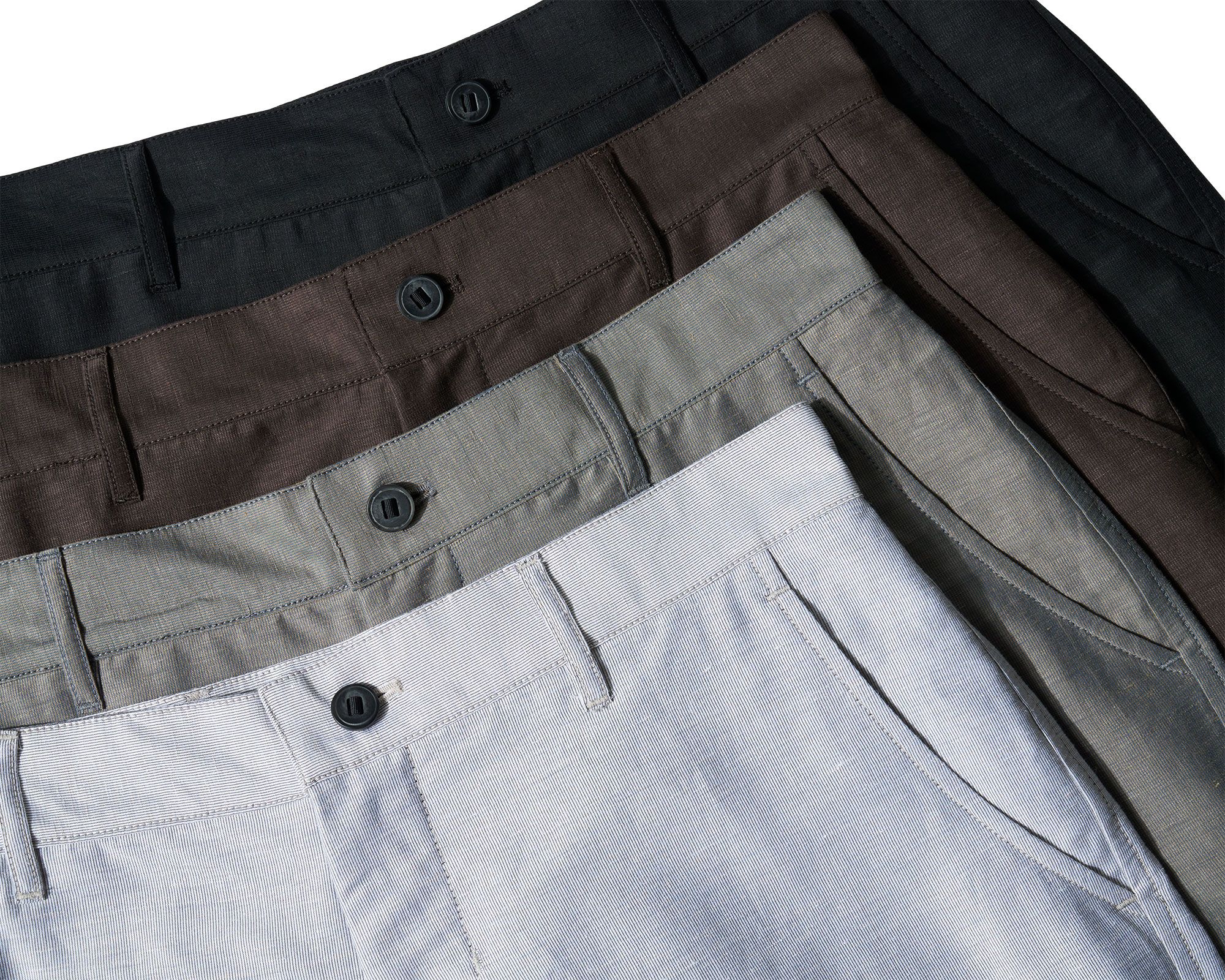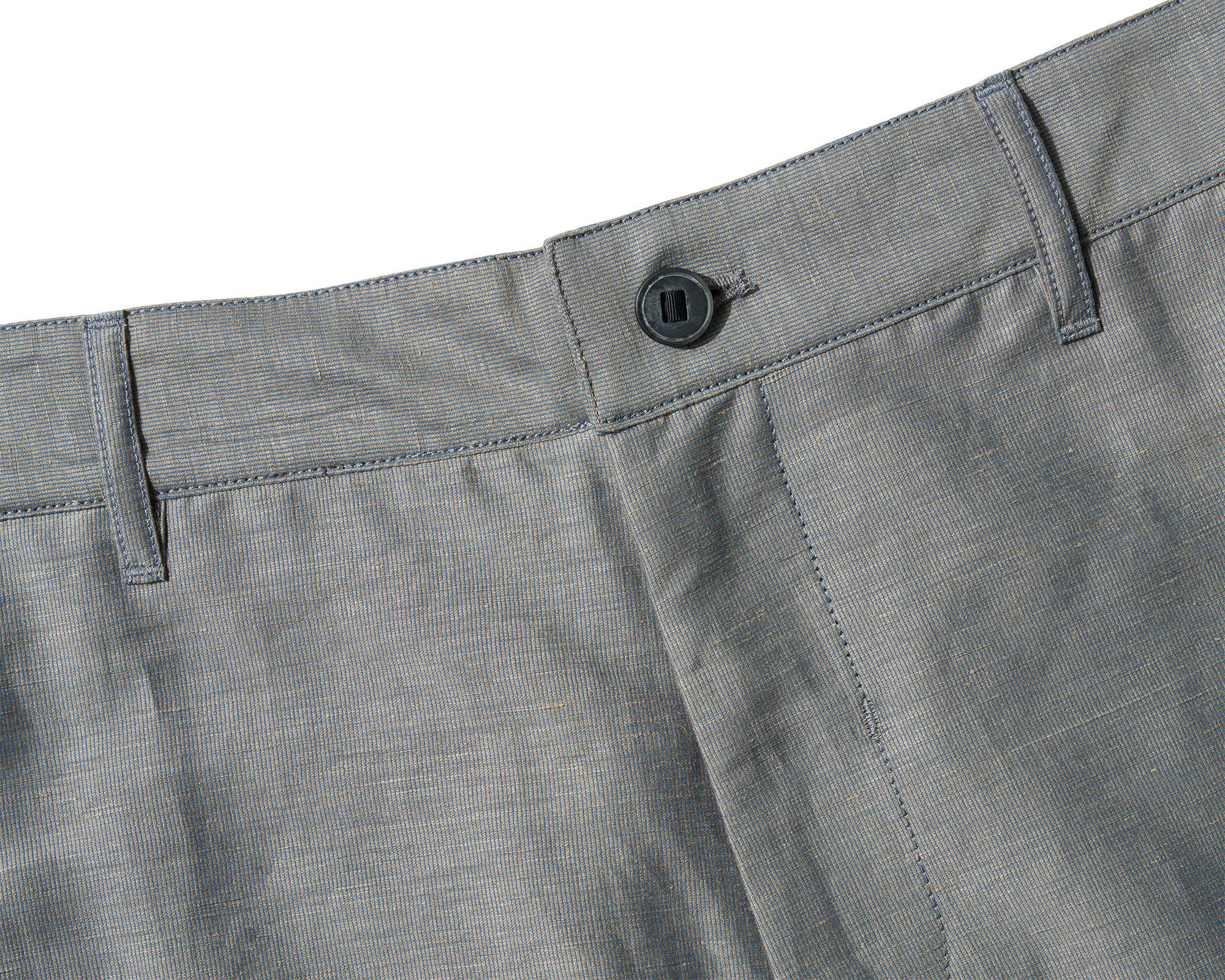 A super light polyester warp mesh is knitted around a linen weft insertion to combine the durability and stability of polyester with the cool wear and character of a bast fiber. The linen is 59% of the fabric weight and its slubby texture and elegant aging shine through. The polyester warp means it doesn't crease sharply like most linen but instead takes on a gentle waviness that makes it far easier to travel with.