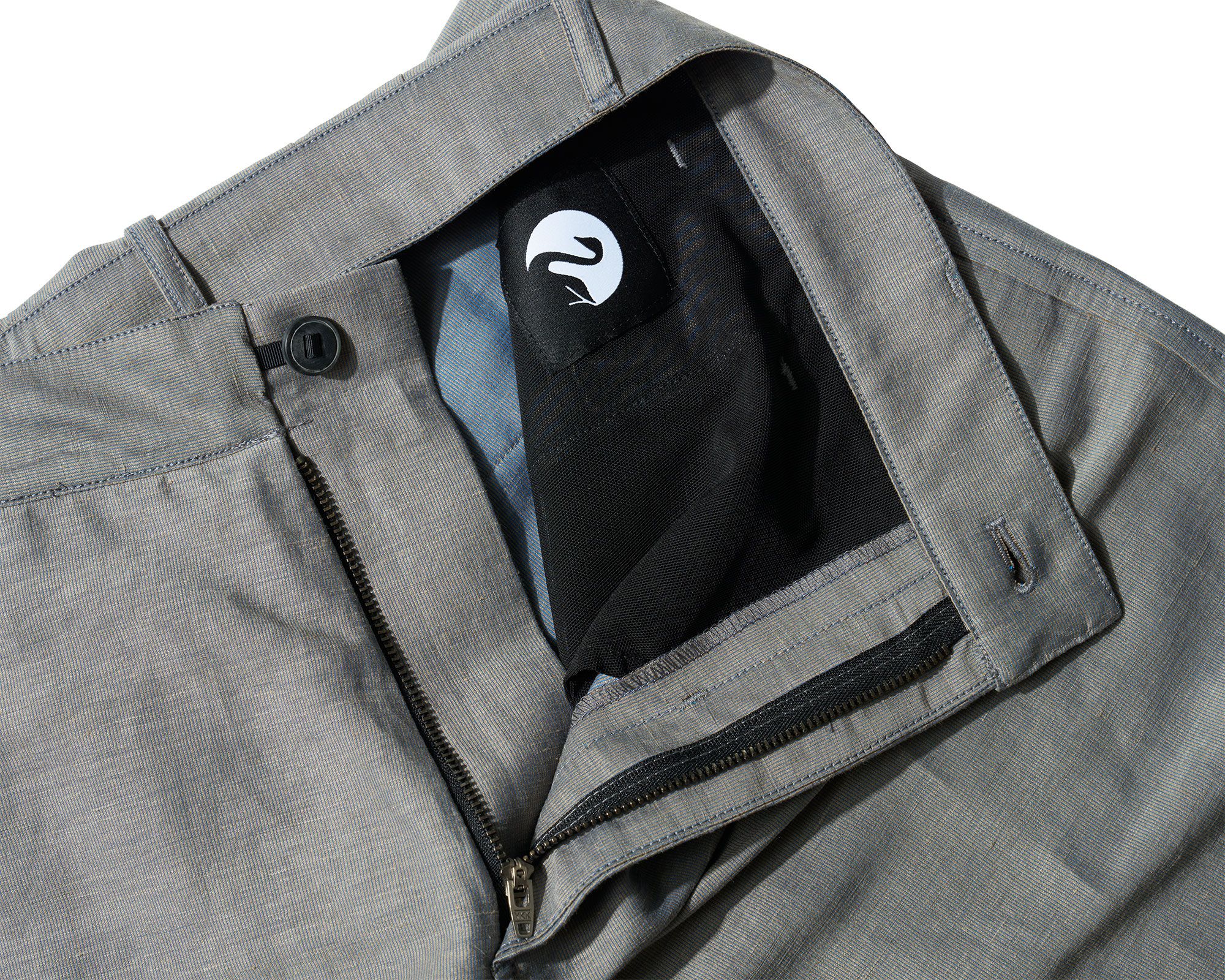 - Black swan woven label on wearers inside left