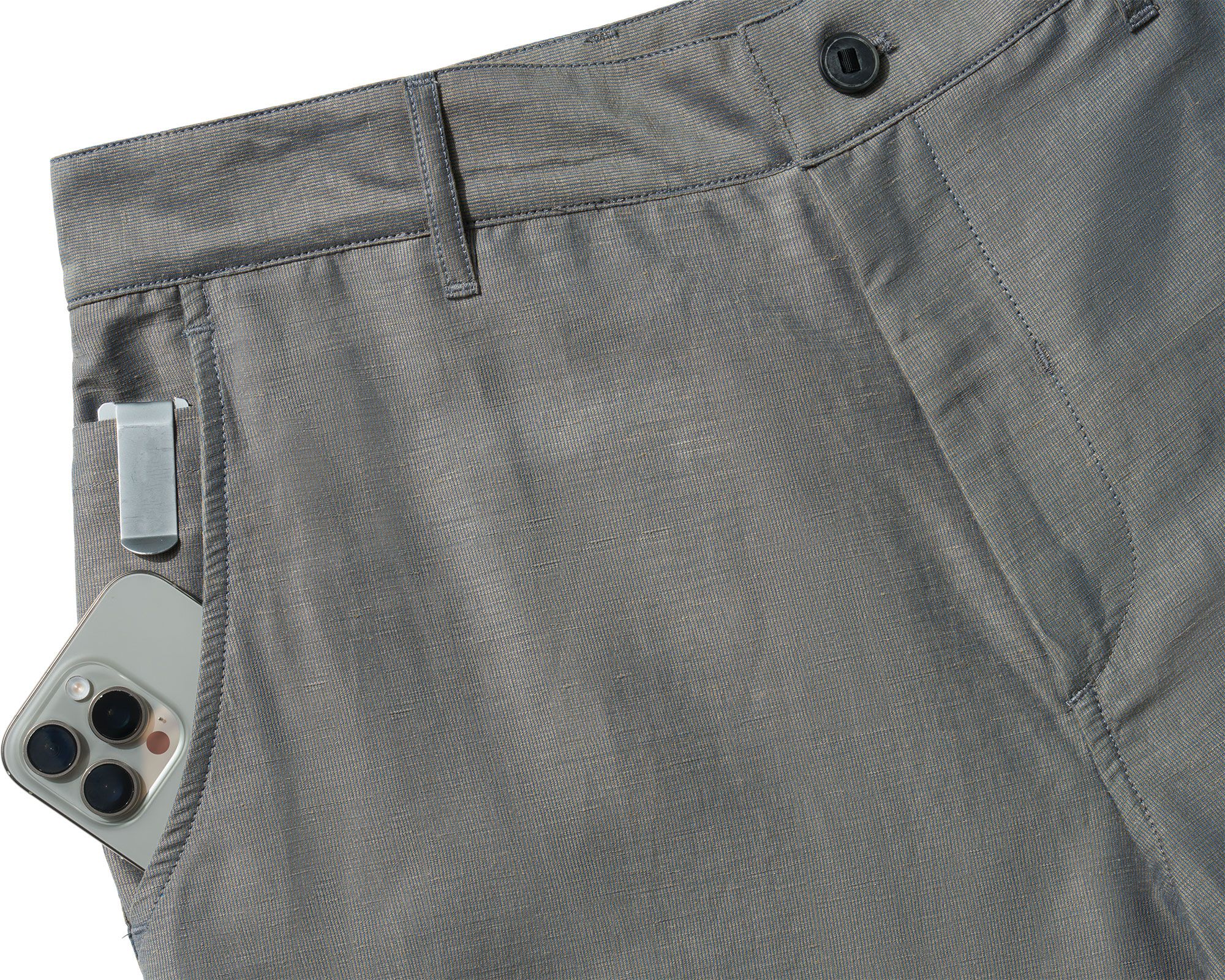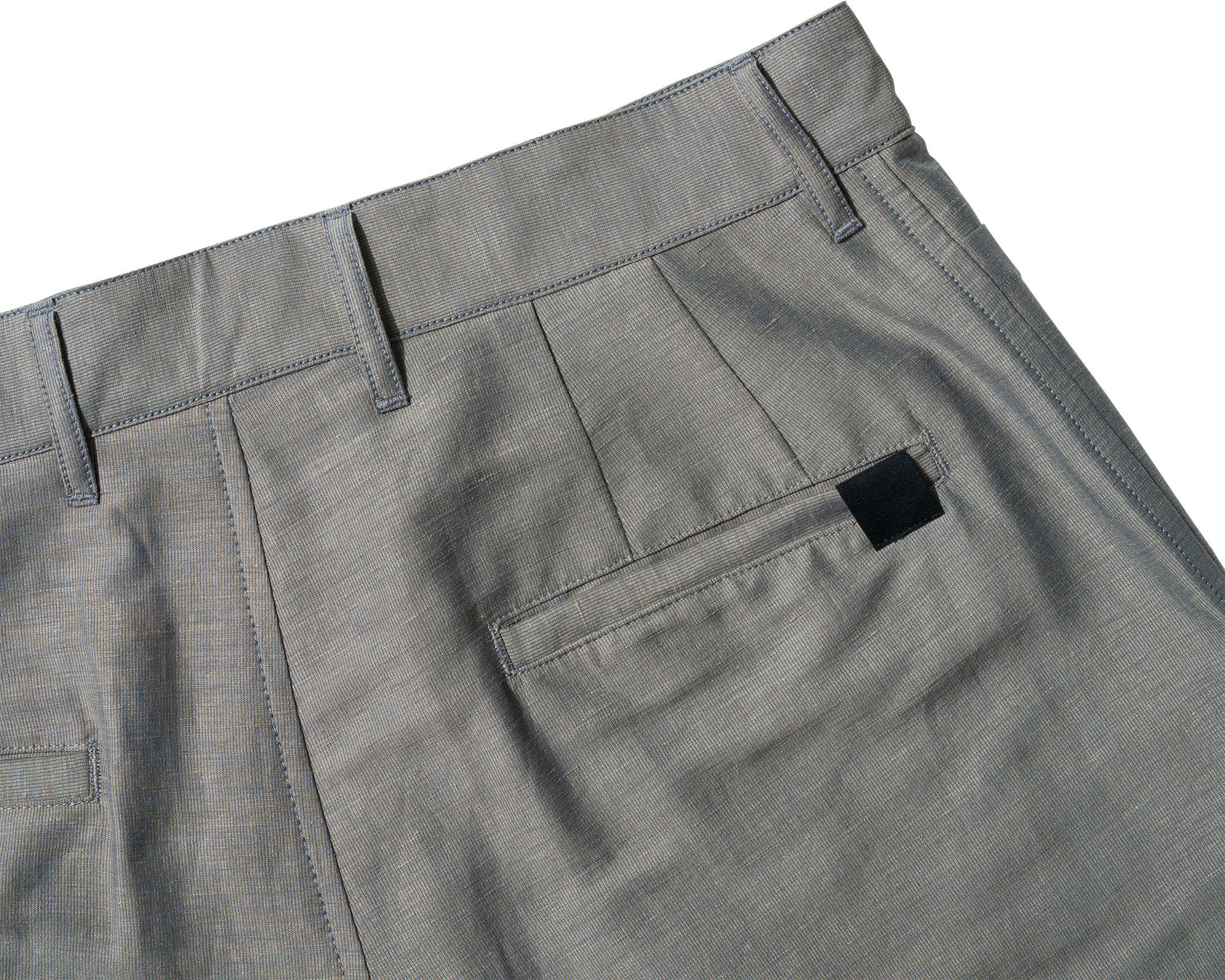 - Two rear welt pockets in self fabric