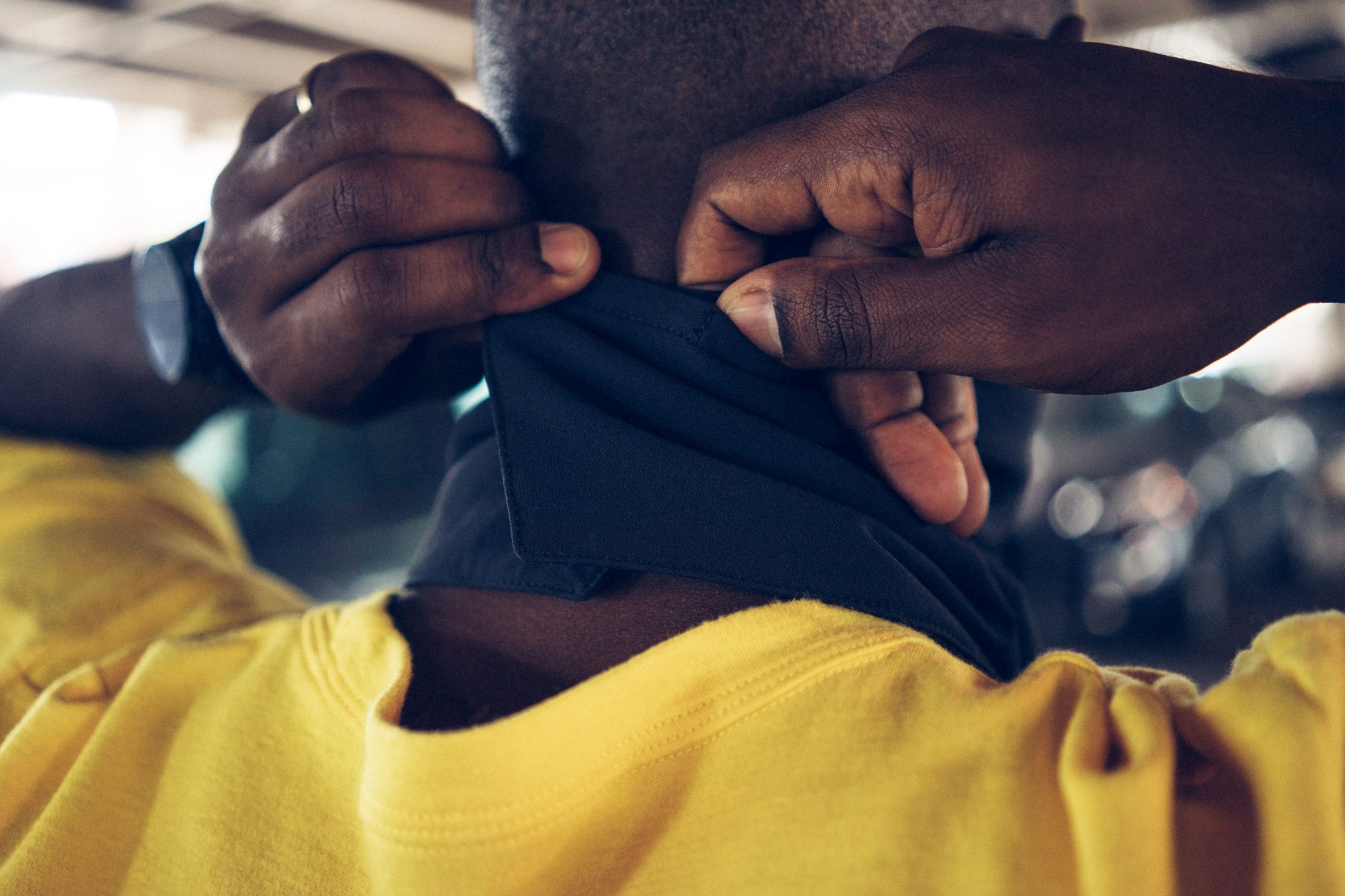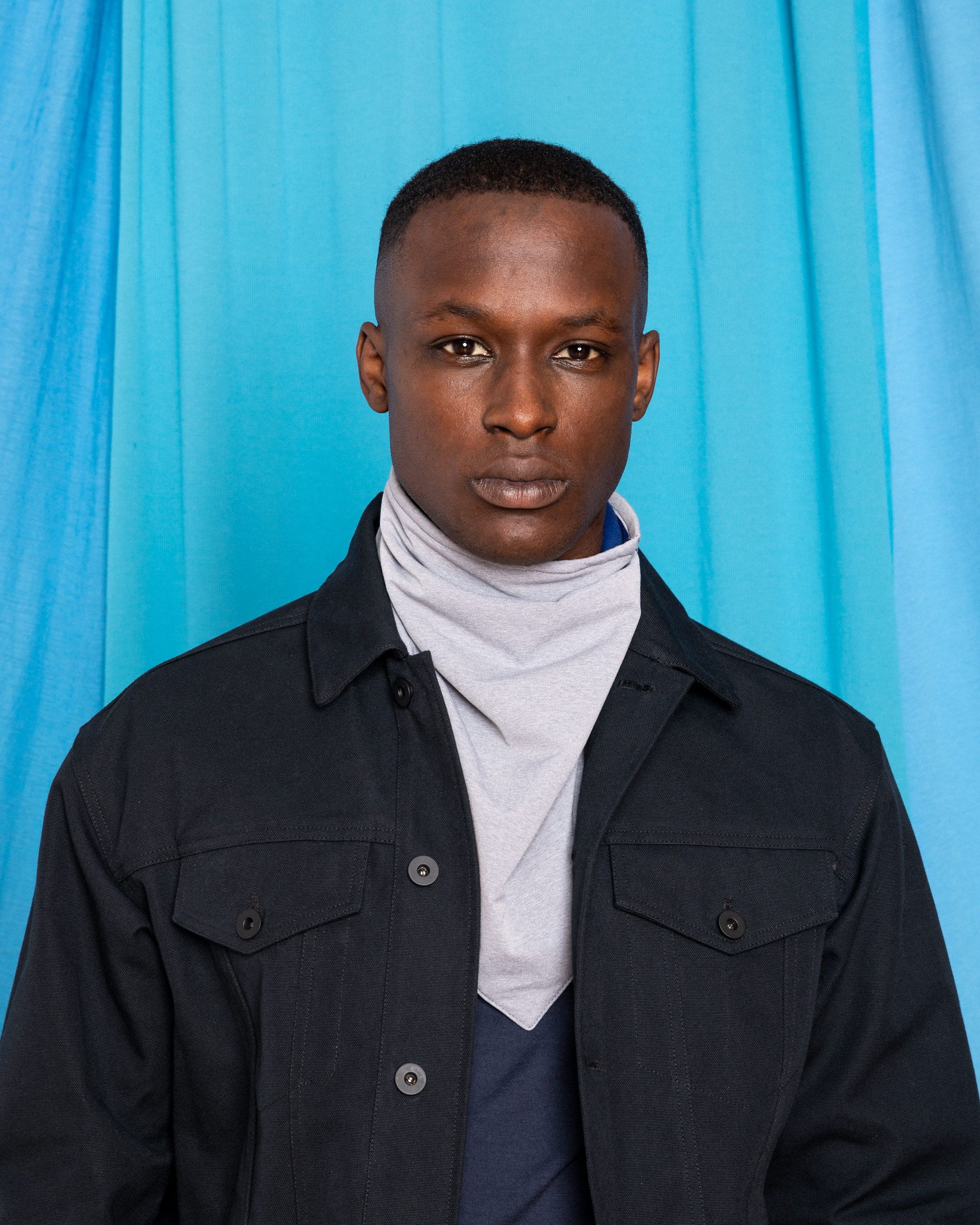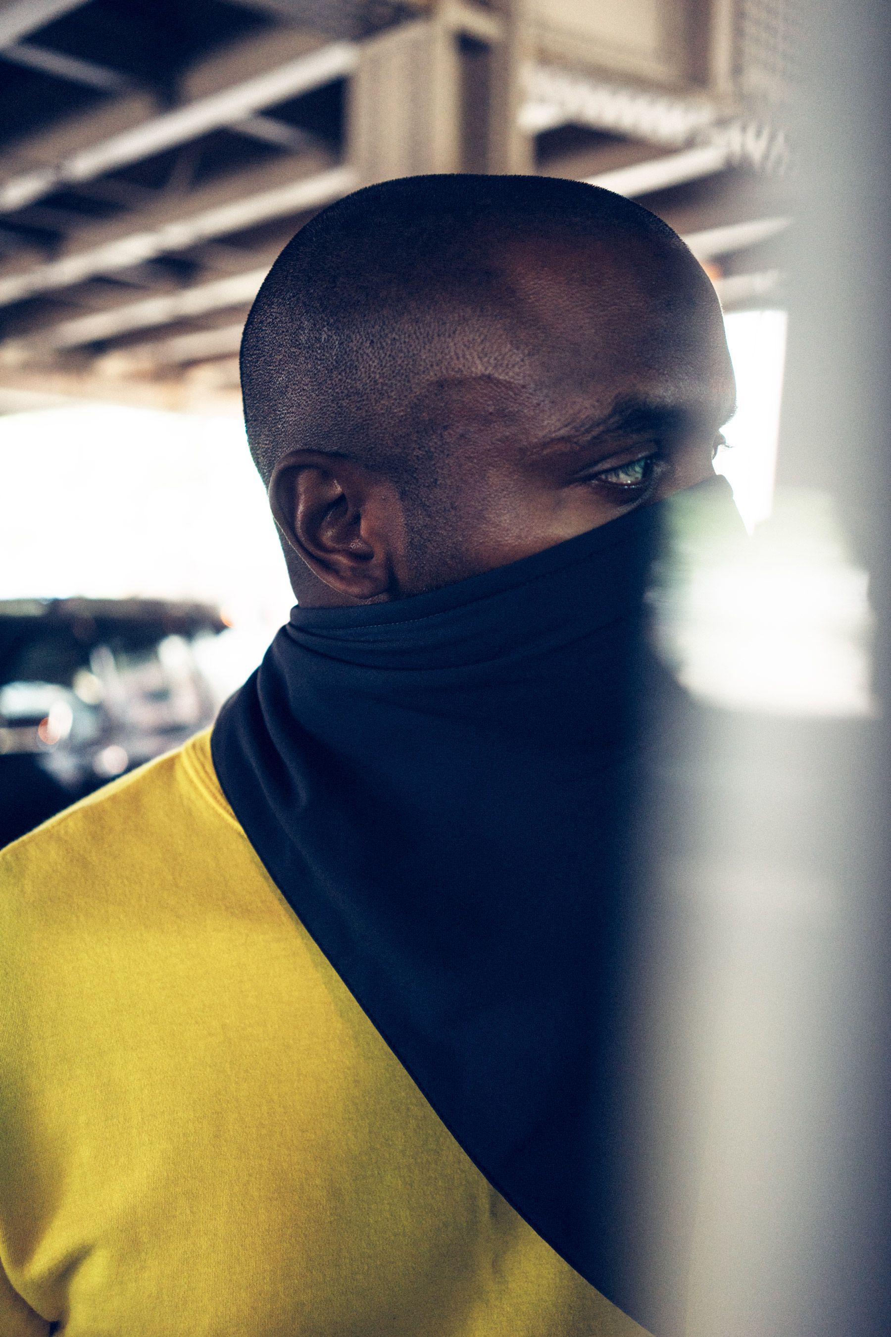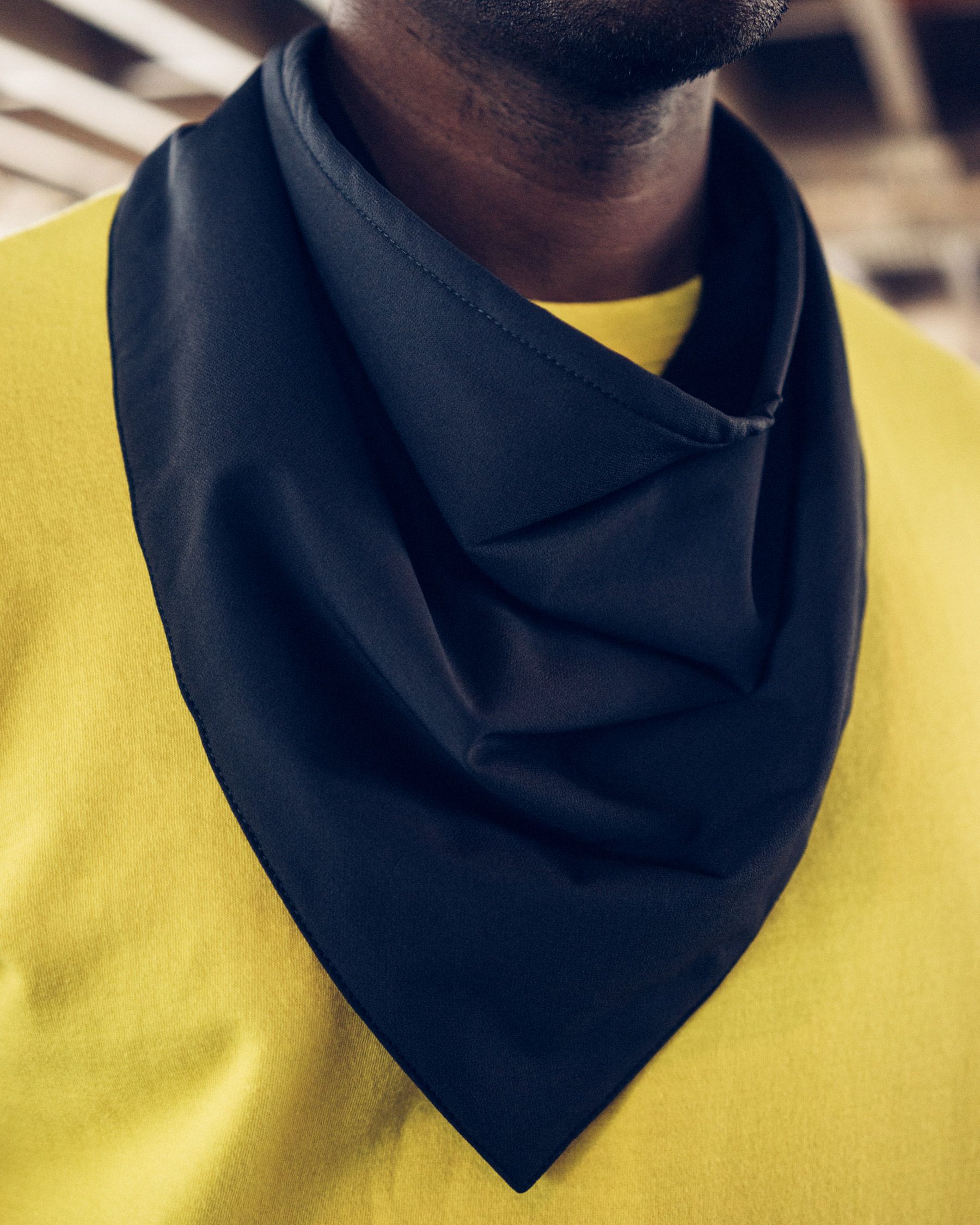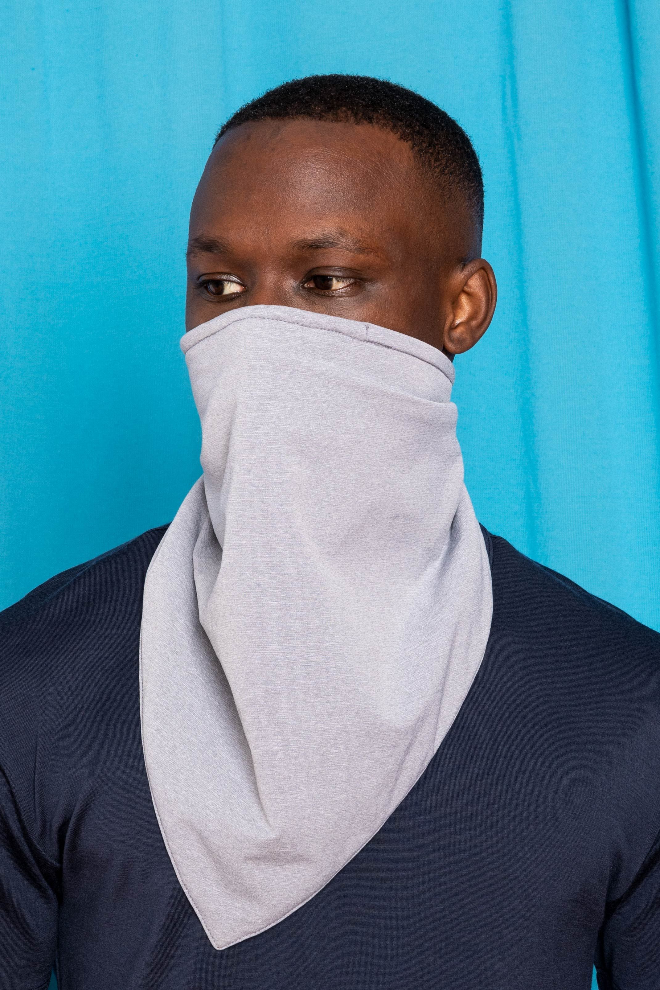 Torey is wearing the Ultracharge Mag Bandana in Whitetint Gray.