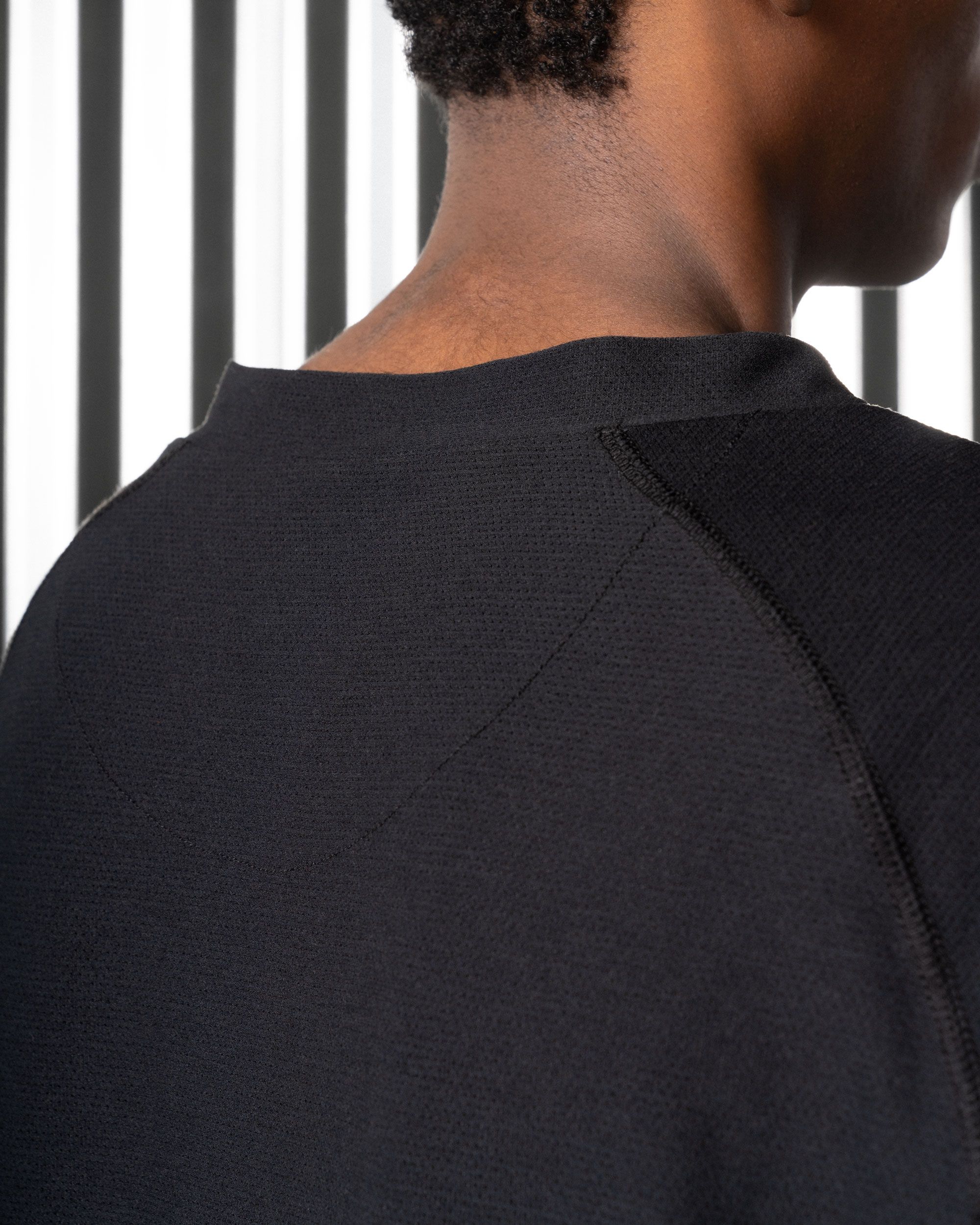These Deltapeak X Solotex yarns are then knit in a drop jersey structure that creates an opaque fabric optimized for lots of air flow. All that complexity and proprietary processing adds up to something quite simple though, an exceptionally dry and more comfortable performance polyester fabric.