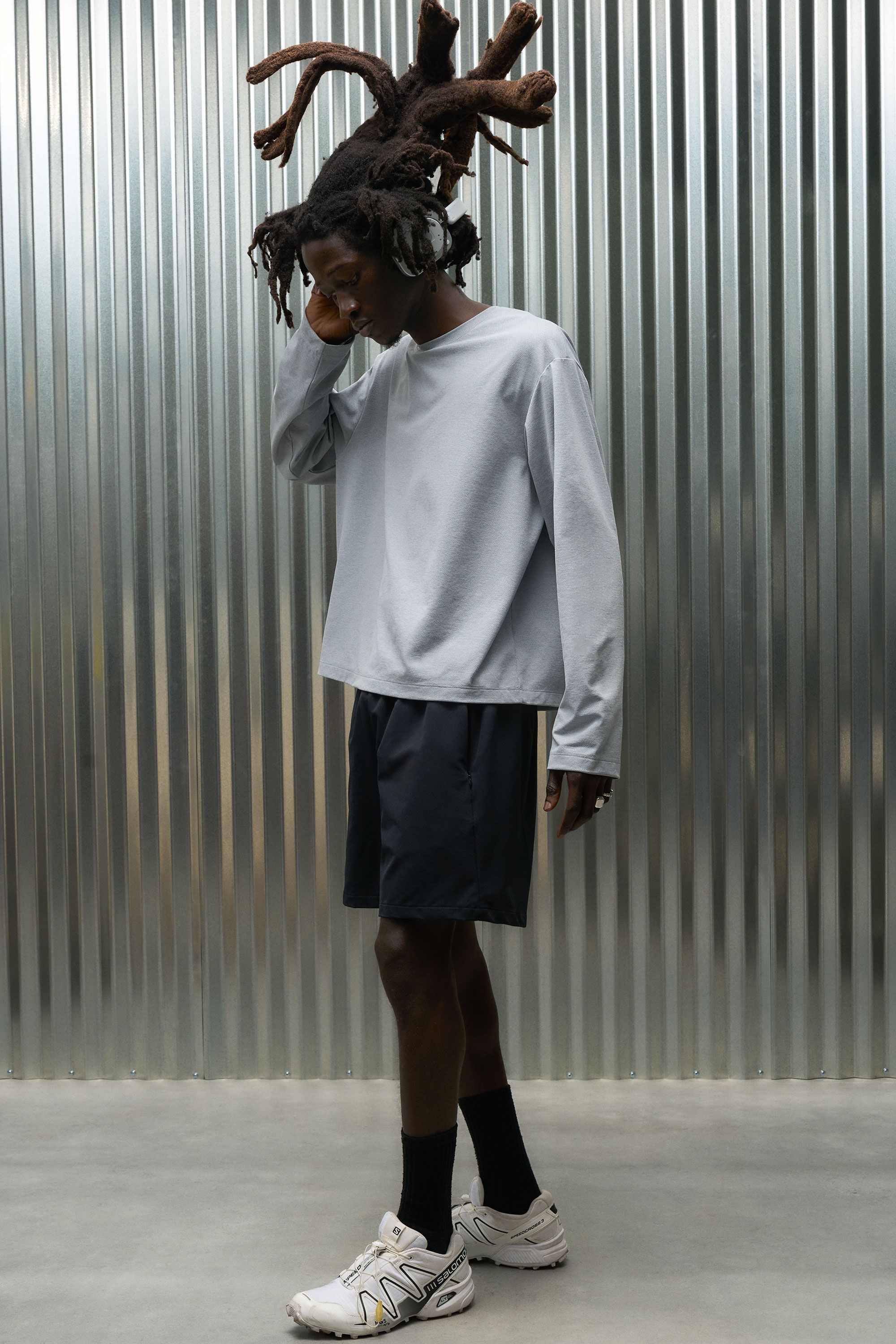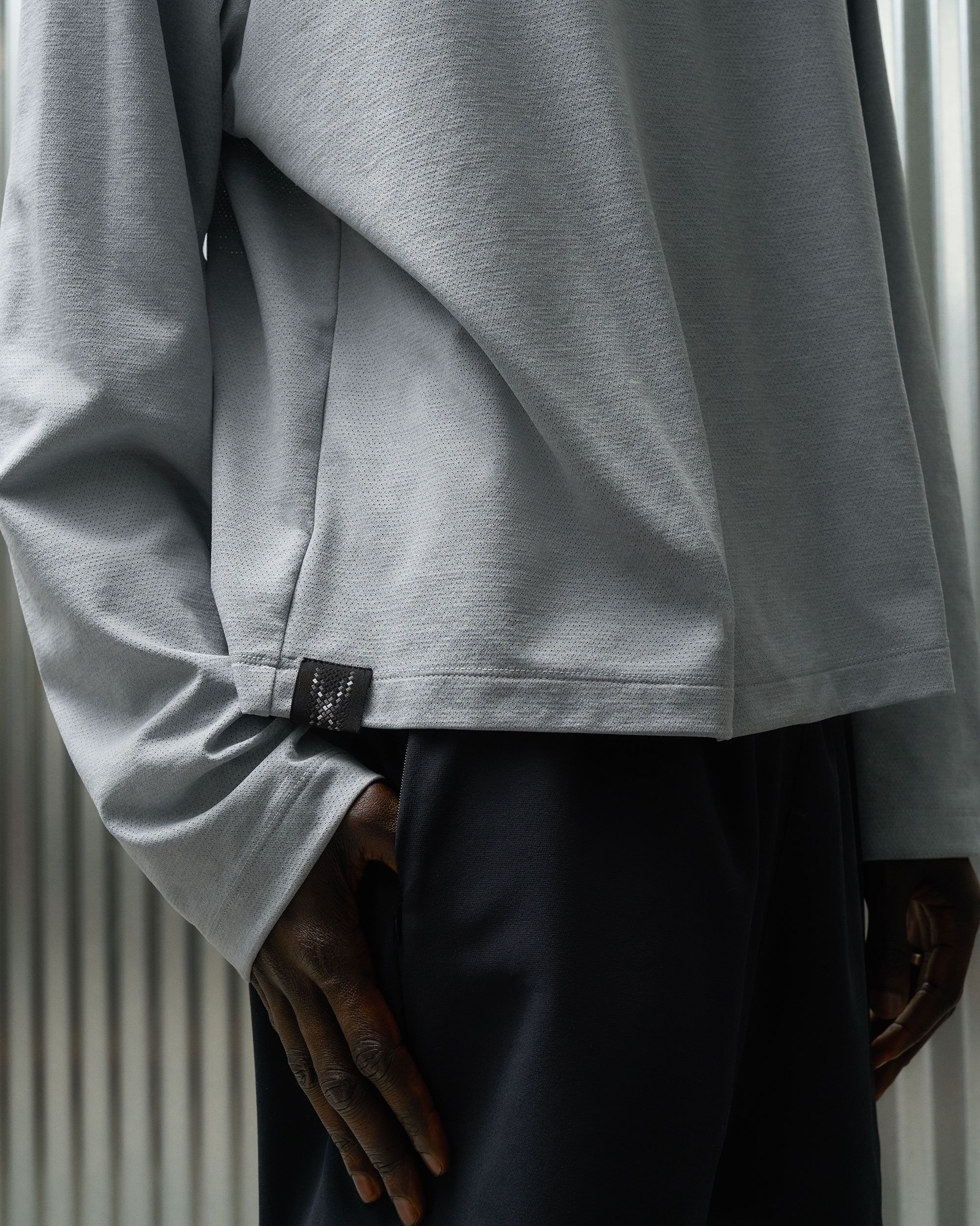 An extra dry polyester jersey unlike any other. Synthesized, spun and knit by Teijin in Japan, this drop jersey combines their Deltapeak yarn spinning technique with their Solotex PTT fibers to create a very different take on a high-tech synthetic fabric.