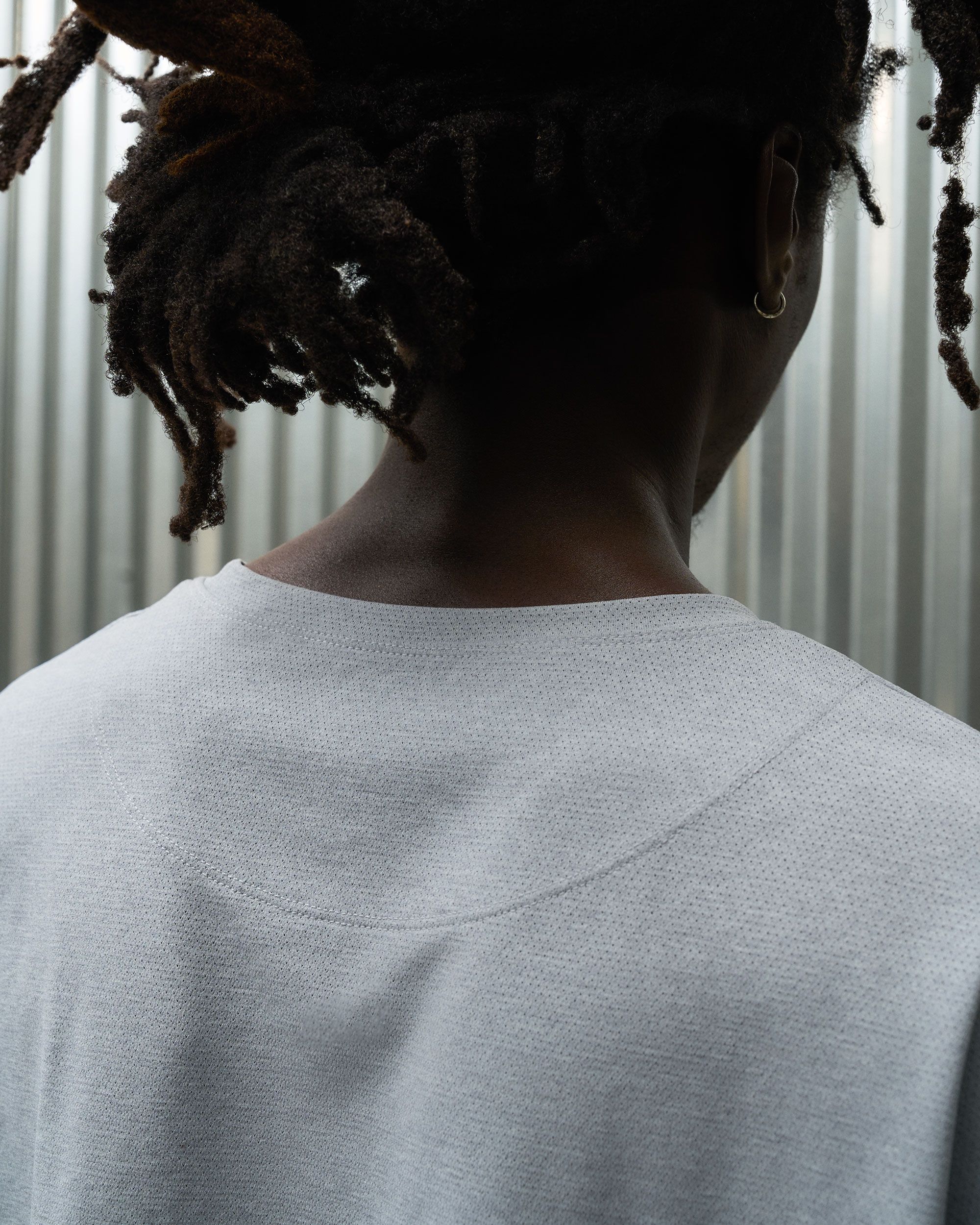 These Deltapeak X Solotex yarns are then knit in a drop jersey structure that creates an opaque fabric optimized for lots of air flow. All that complexity and proprietary processing adds up to something quite simple though, an exceptionally dry and more comfortable performance polyester fabric.