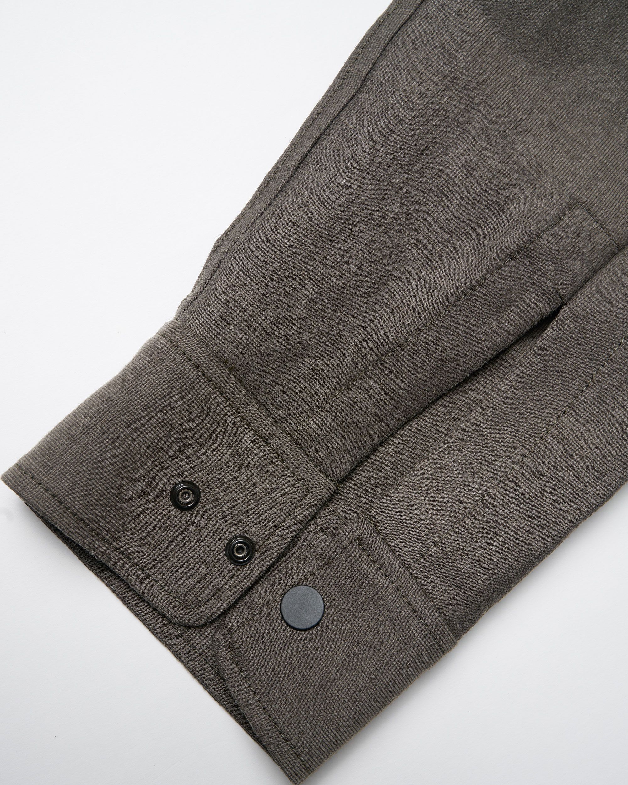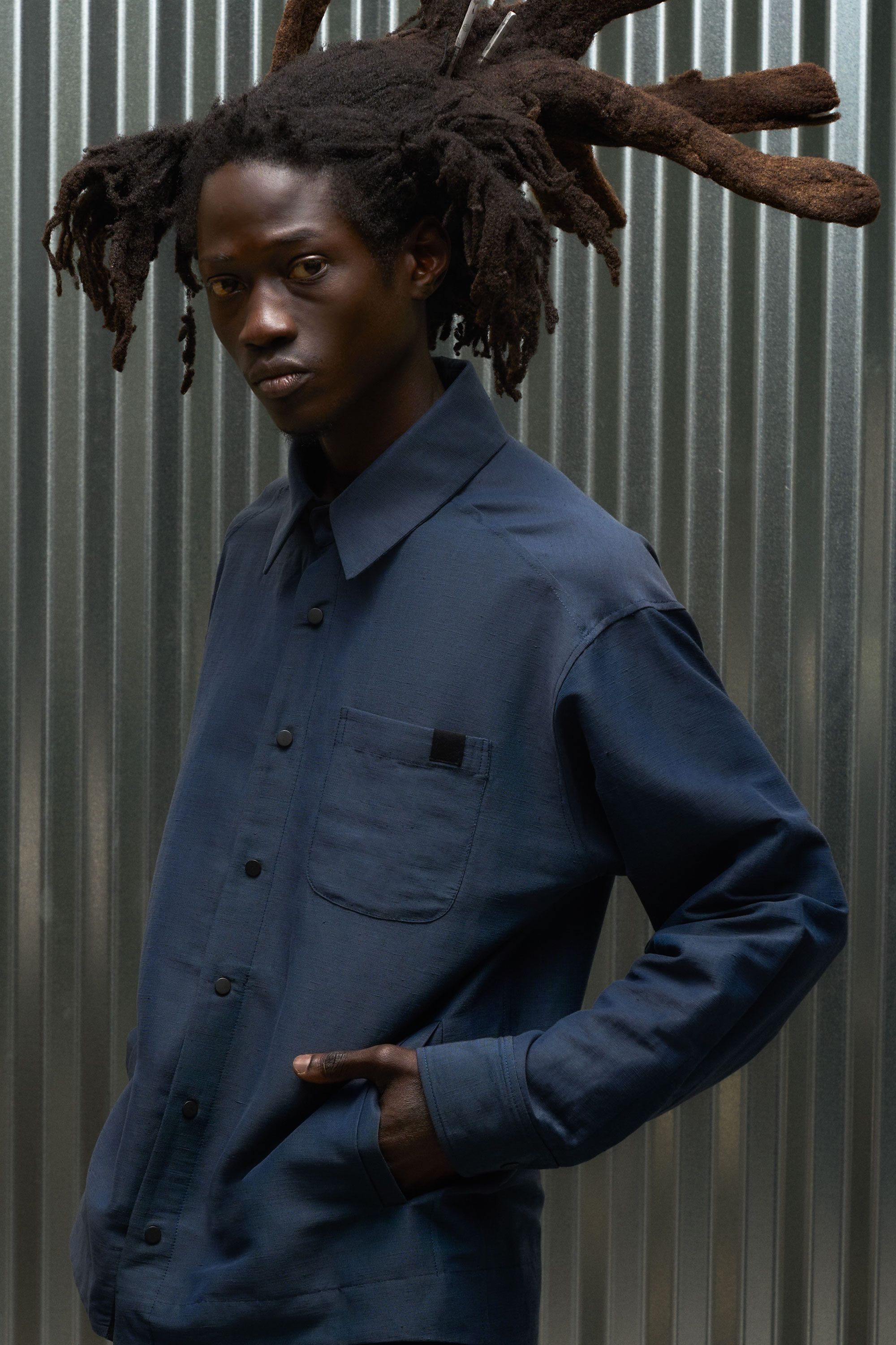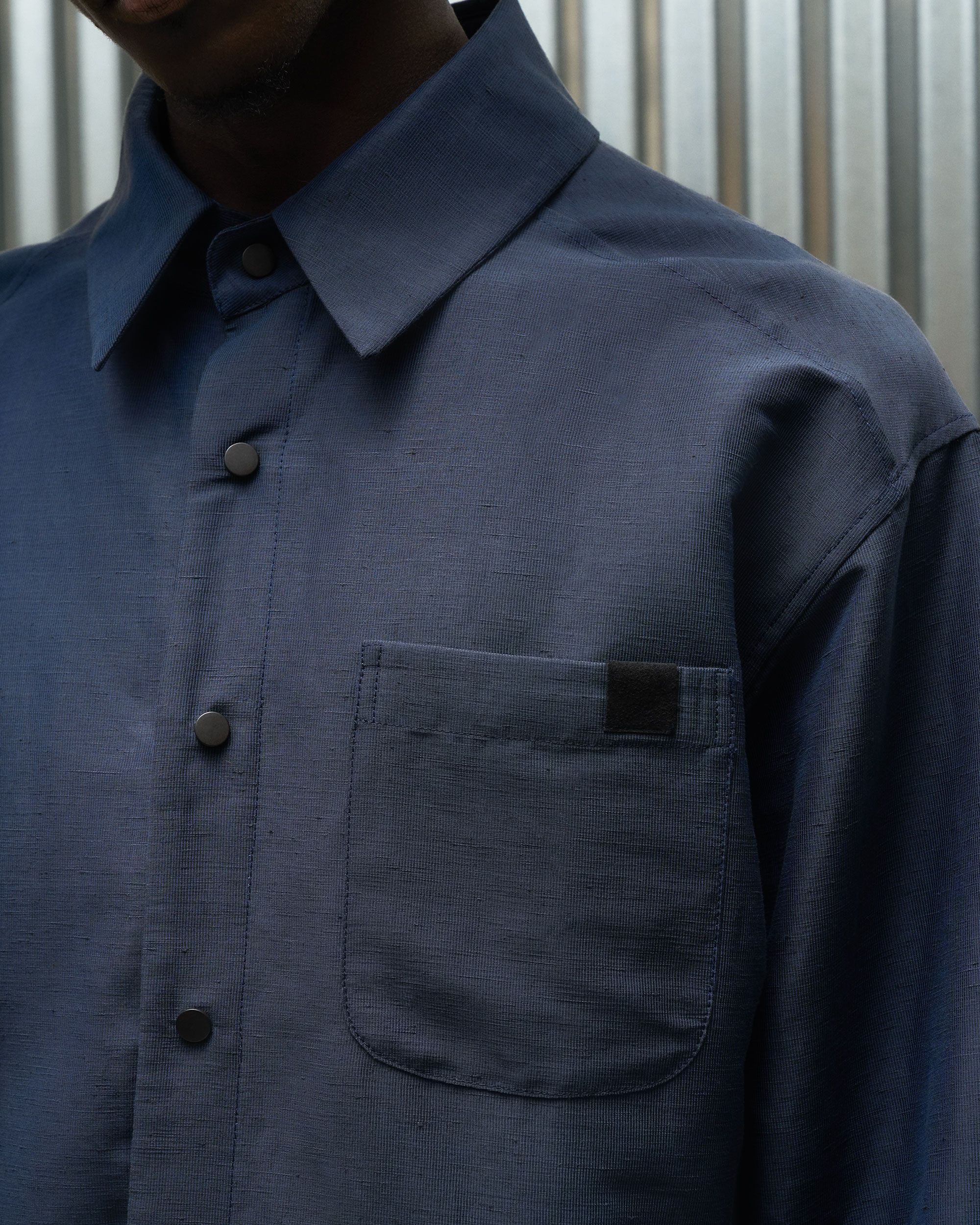 Designed for a jacket style fit, with room for layering underneath. Can be sized down for a closer, overshirt style fit