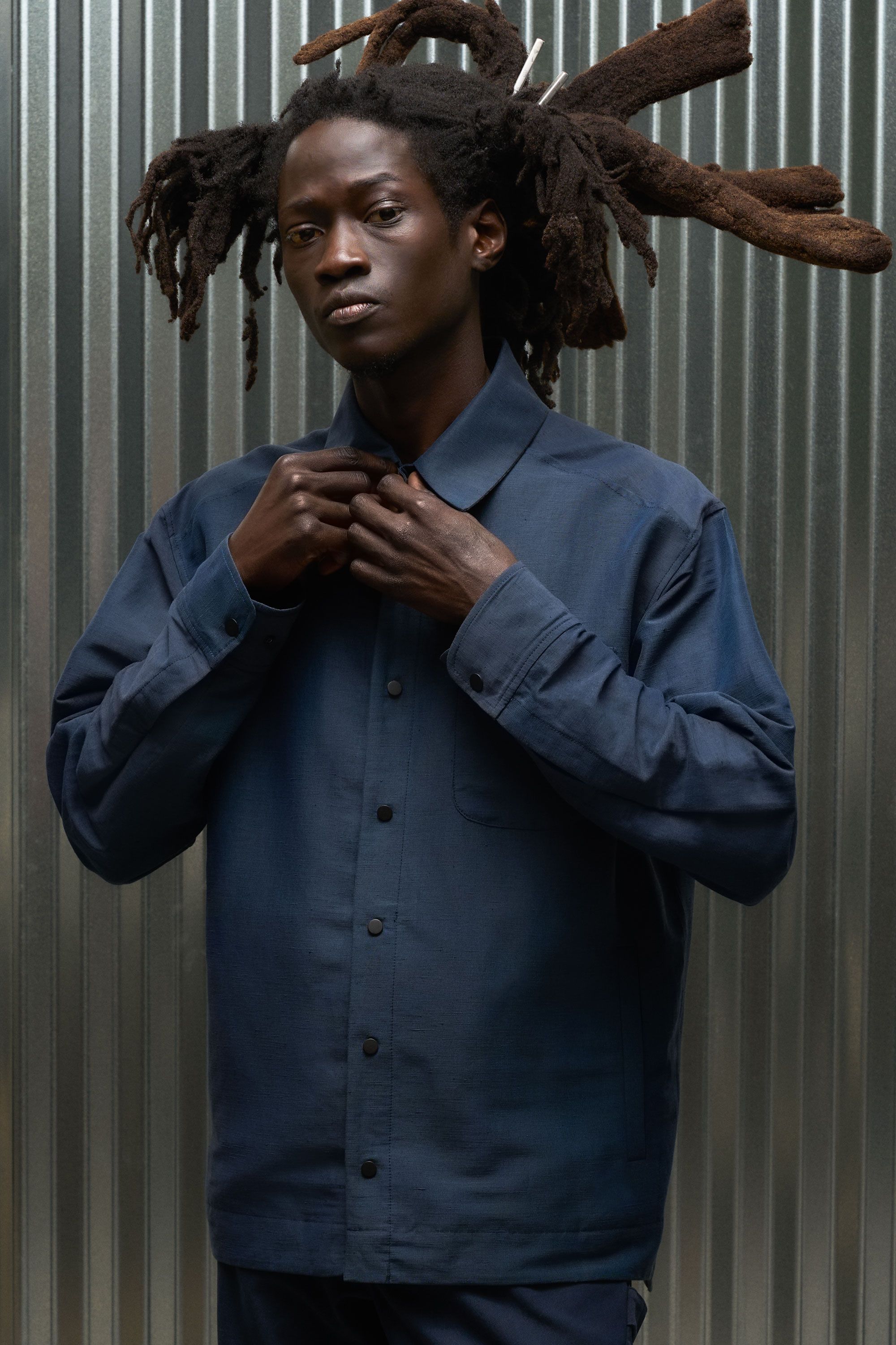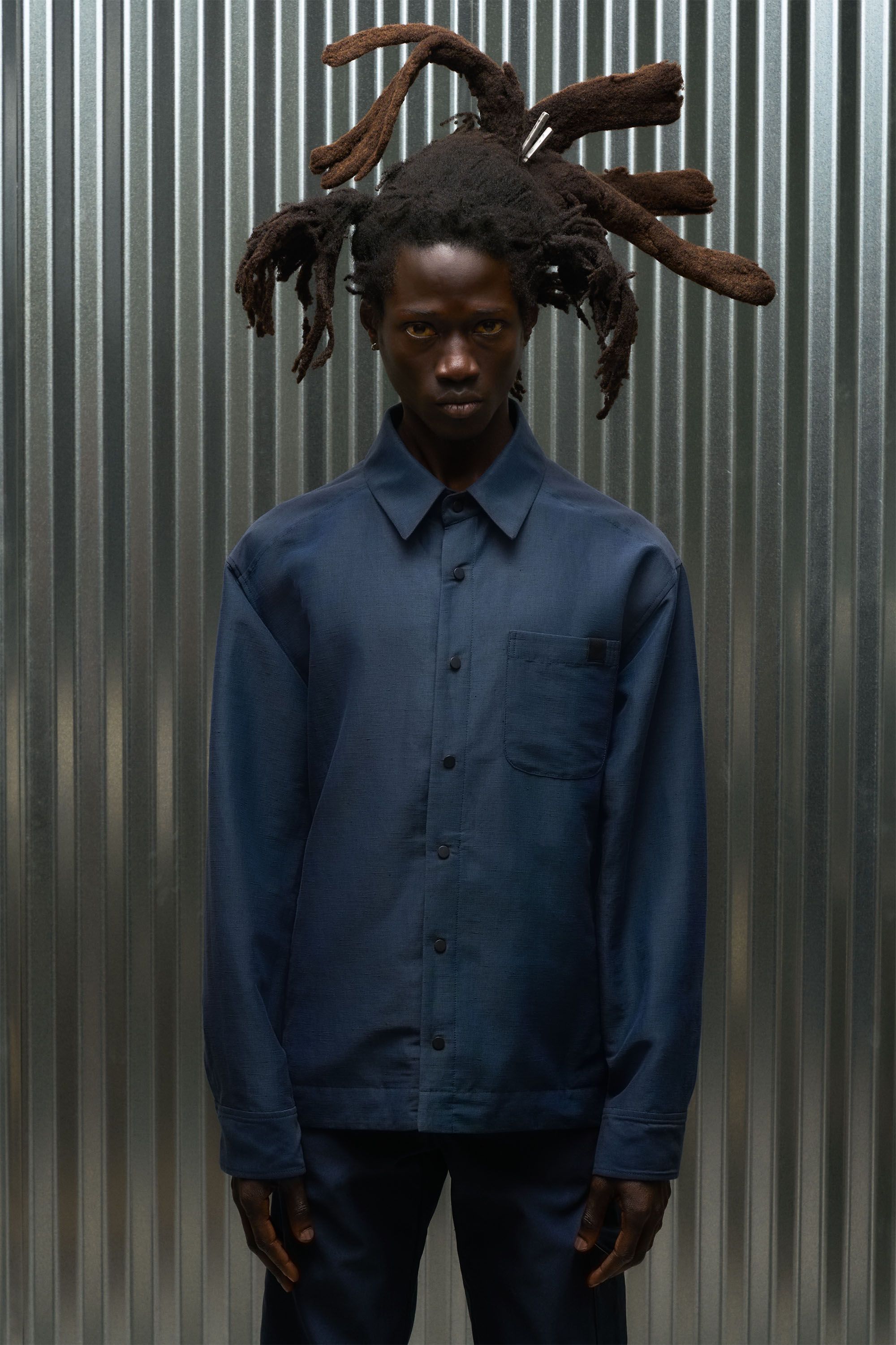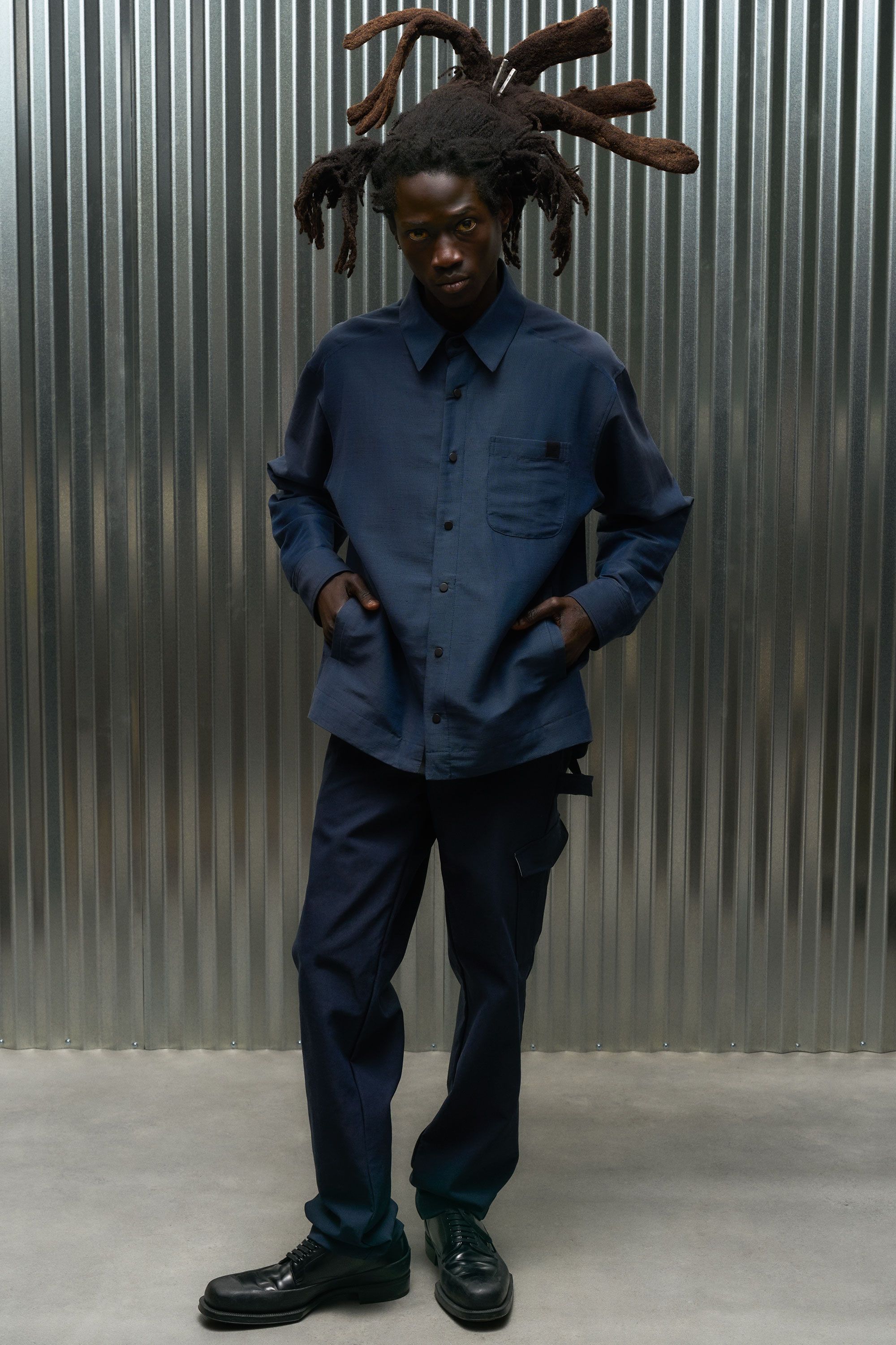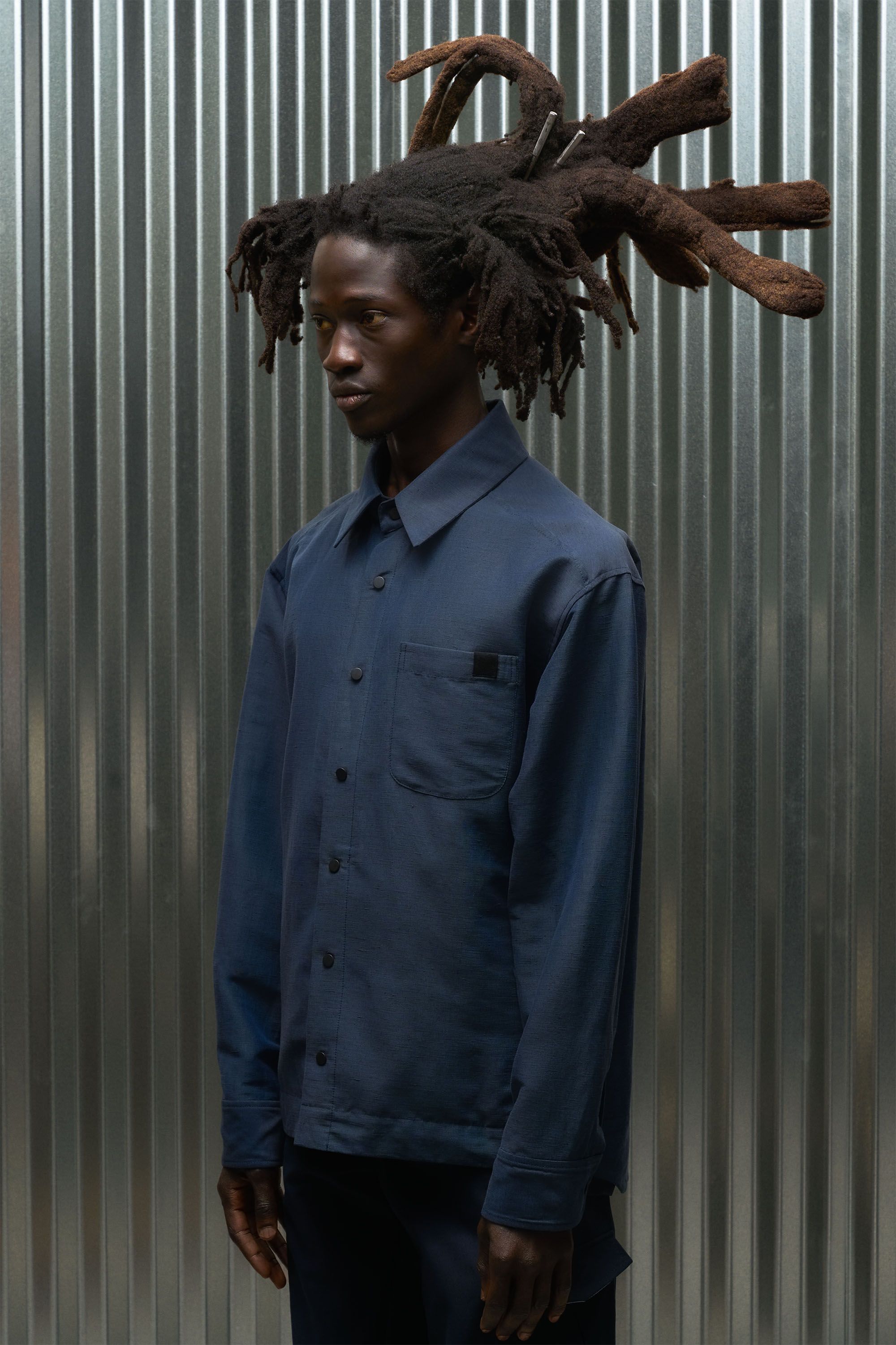 Designed for a jacket style fit, with room for layering underneath. Can be sized down for a closer, overshirt style fit
